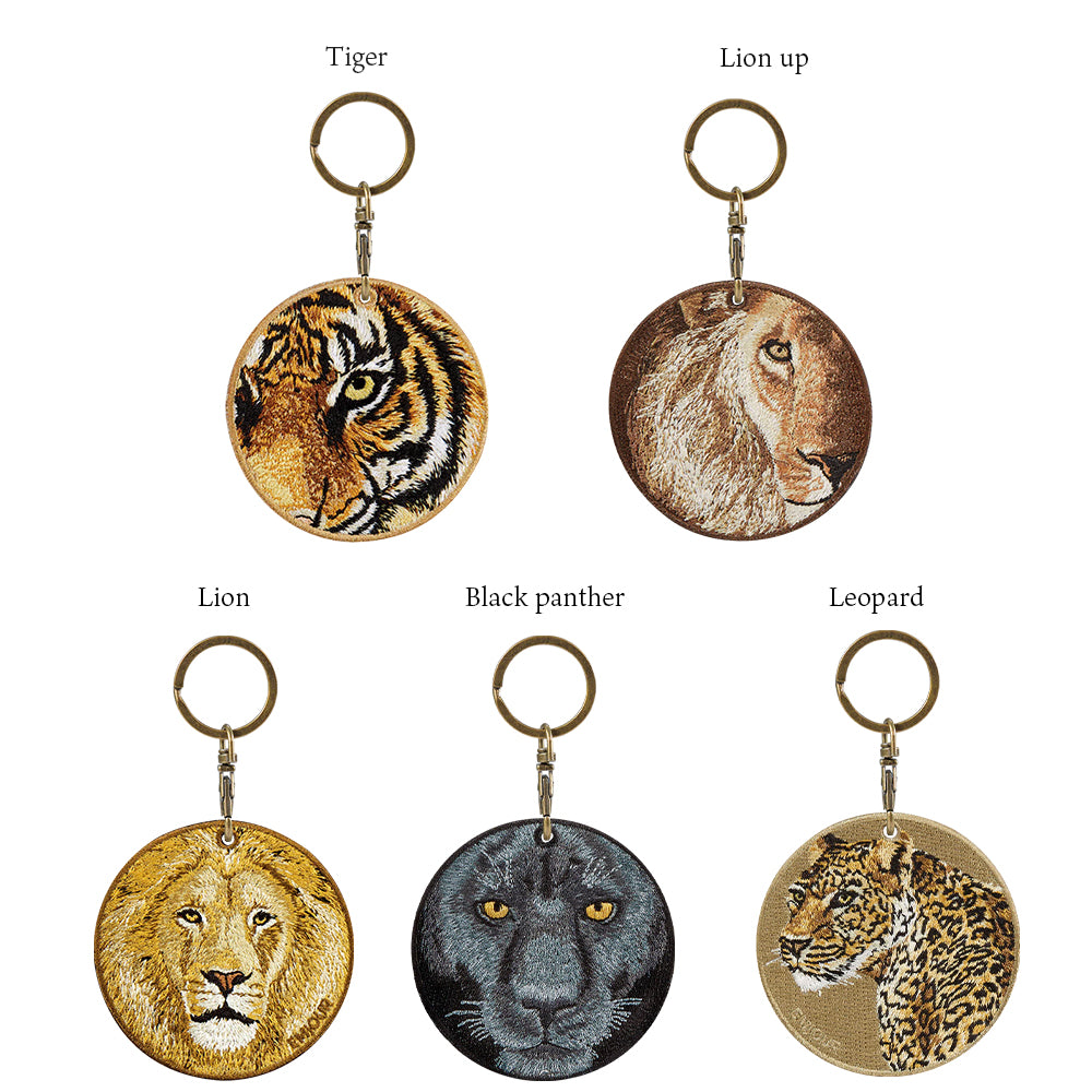 キーホルダー 動物 刺繍 ワッペン アニマル チャーム ライオン トラ 虎 タイガー 黒ヒョウ ひょう レオパード グッズ プレゼント ギフト 贈り物 EMJOUR エンジュール 台湾 車 自転車 カギ 鍵 おしゃれ