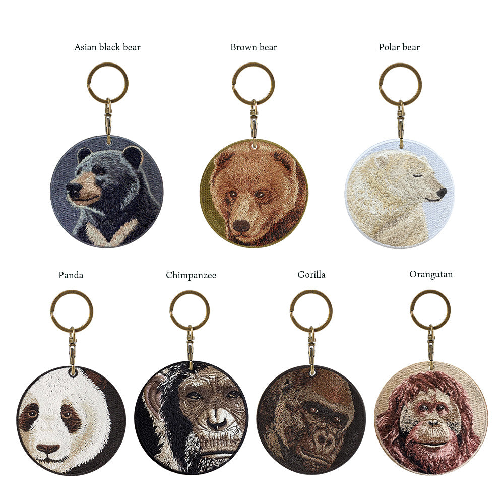EMJOUR エンジュール 刺繍 キーホルダー チャーム 台湾 ツキノワグマ クマ シロクマ パンダ チンパンジー ゴリラ オランウータン プレゼント ギフト 贈り物 動物園 (animal-7)