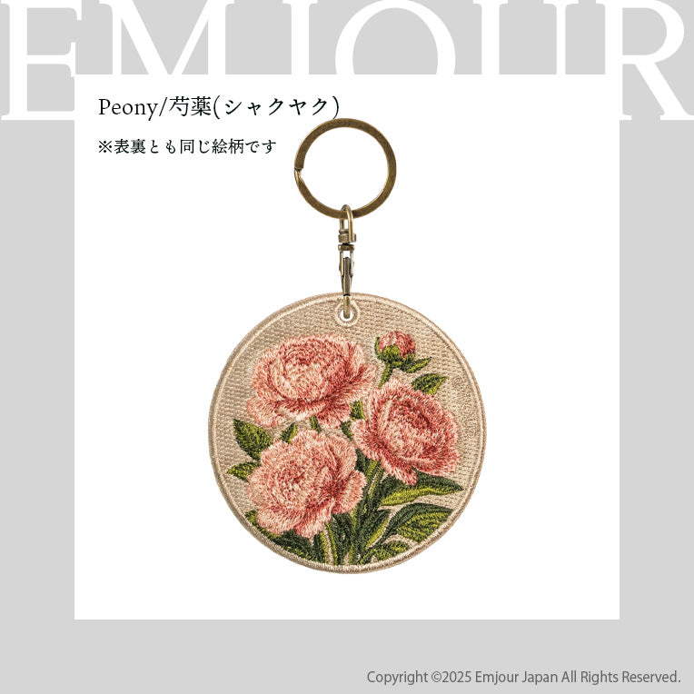 キーホルダー 植物 刺繍 ワッペン チャーム 物 サボテン バラ モンステラ 芍薬 シャクヤク ガーベラ デイジー グッズ プレゼント EMJOUR エンジュール