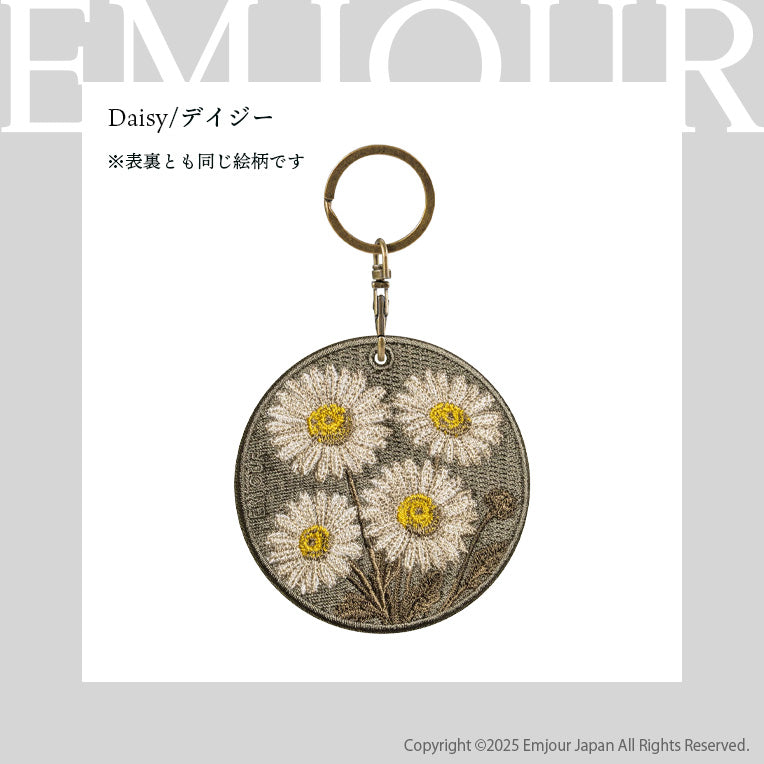 一部分だけに刺繍が施されることが多い刺繍プロダクトですが、EMJOURのキーチャームは、全面に刺繍を施しています。