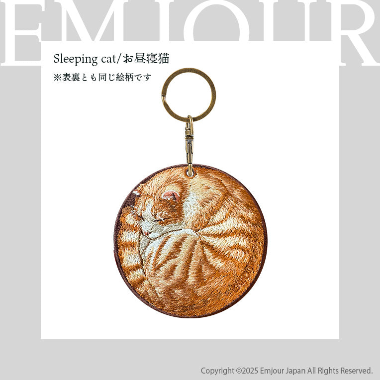 キーホルダー 犬 猫 刺繍 ワッペン アニマル チャーム 柴犬 黒柴 お散歩 トラ猫 お昼寝 ペット グッズ プレゼント EMJOUR エンジュール ペットロス